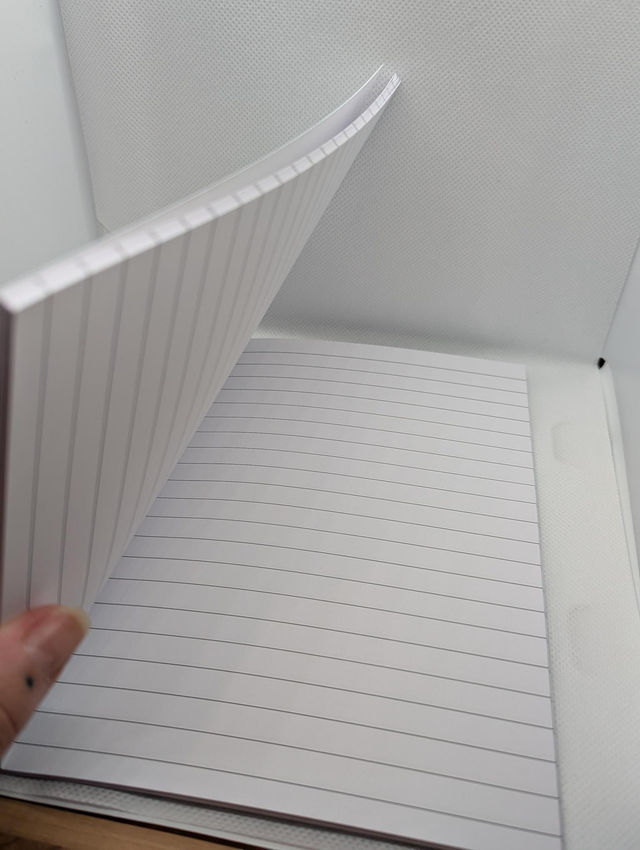 The note books are made with a thick card for the cover and 60 lined sheets inside (120 pages), they're A5 in size and stapled at the spine. They're perfect for on the go as well as around the home/school/office.
