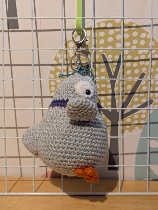 A very rotund pigeon keyring that is the perfect pal for your keys or to be used as a bag charm.