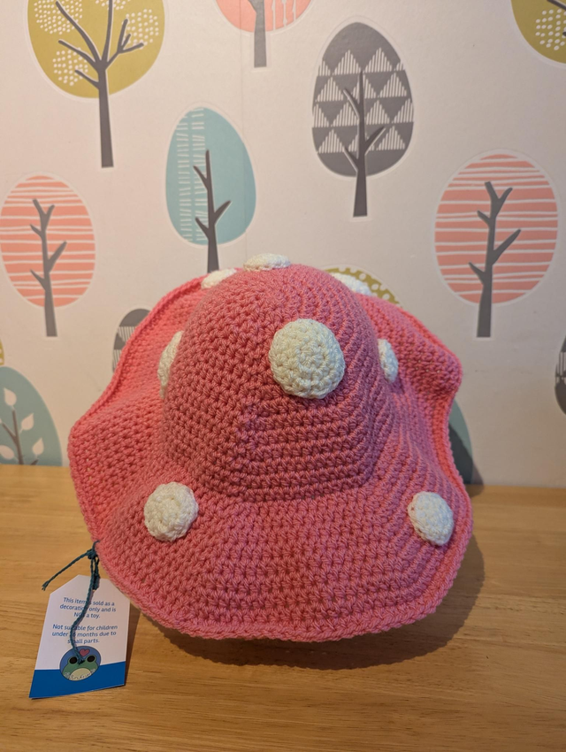 Available in a variety of vibrant colours, this pre-made hat features delicate frilled edges that mimic the natural beauty of a mushroom cap. Perfect for costume parties, themed events, or simply adding a playful accessory to your outfit.