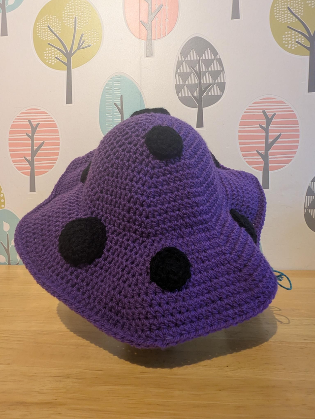 Add a whimsical touch to your look with this charming frilly mushroom hat, expertly crocheted and ready to order!
